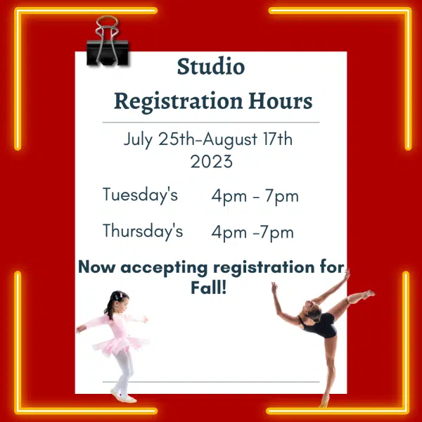 High Definition Dance will be open on Tuesdays and Thursdays until August 17th for in studio registration hours! We are still accepting summer camp and dance class registration, as well as registration for the 2023-2024 dance season! You are also welcome to stop by during those hours for a studio tour, or even just to meet us and ask some questions.